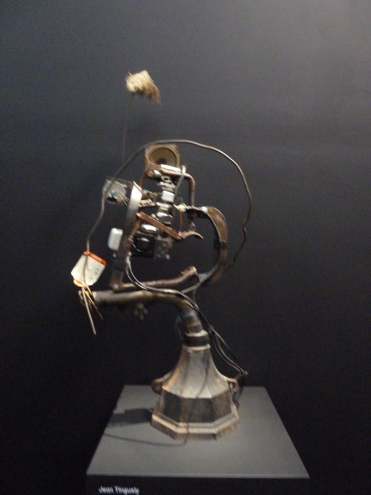 De son côté, Jean Tinguely ne compose ses sculptures qu'avec des matériaux de récupération disparates chinés dans les décharges. Acte militant contre une société de consommation et de gaspillage. Il jubile à construire des "machines qui ne servent à rien" actionnées, pour la plupart, par des moteurs qui leur font adopter une véritable danse de Saint-Guy, dans un vacarme assourdissant. Une inutilité qui n'est pas sans rappeler Les Temps modernes de Charlie Chaplin, soulignant peut-être ainsi, en filigrane, les gestes mécaniques, répétitifs et déshumanisés de l'homme du XXe siècle enchaîné à son plan de travail, nouvel esclave d'une société industrielle à l'économie productiviste et sans âme, dont il ne profitera pas des bénéfices colossaux.